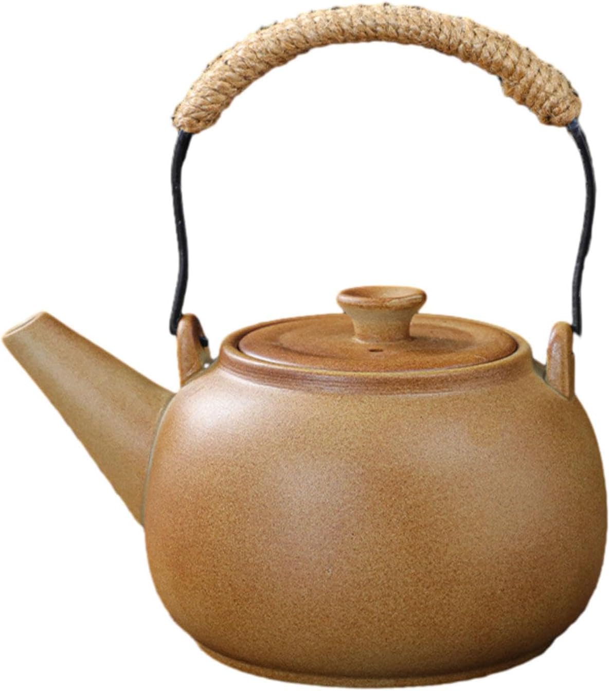Terakotový čajník s prírodnou jutovou rúčkou. Spojenie tradície a funkčnosti.